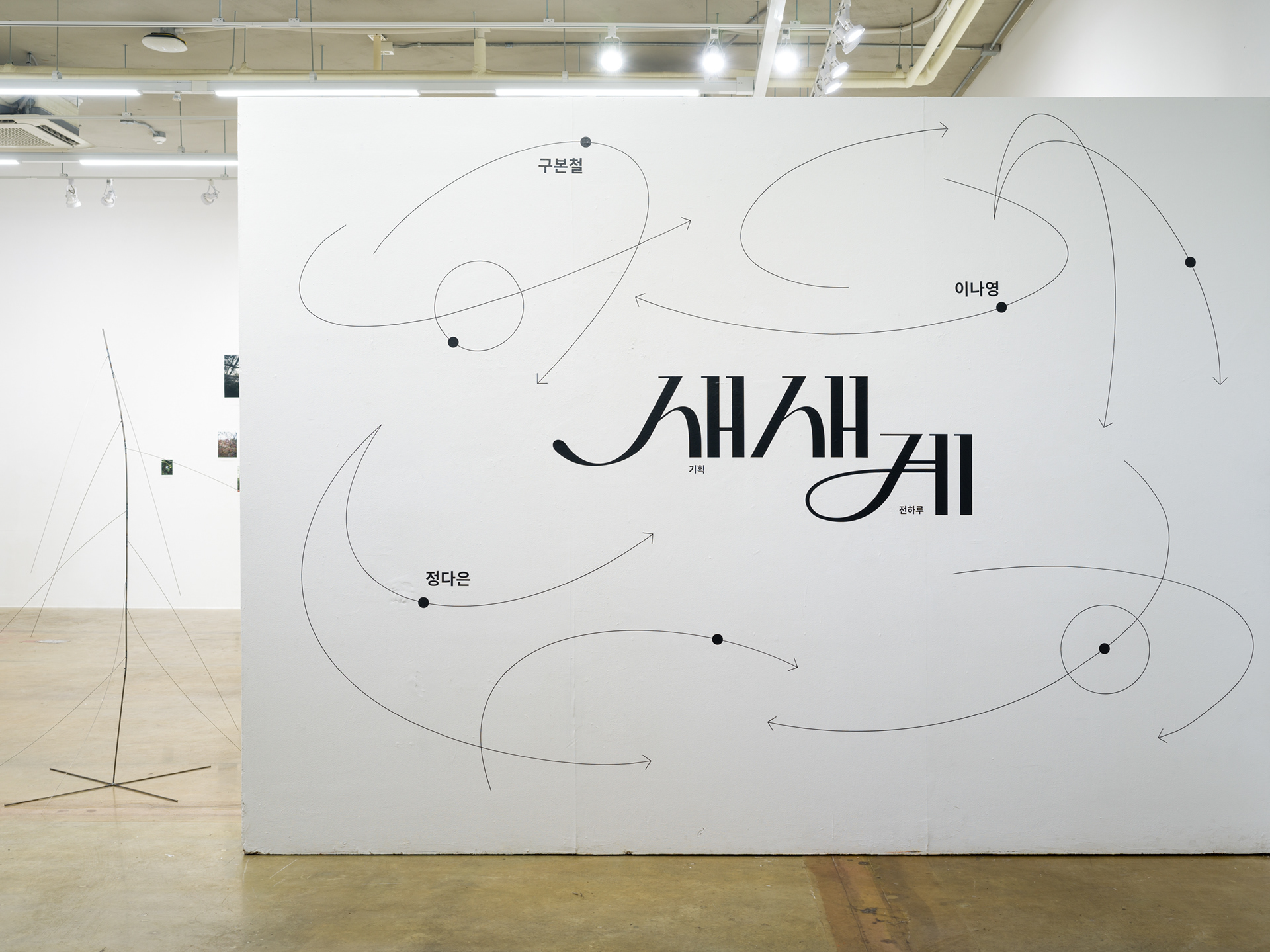 세 작가의 작업에서는 공통적으로 새가 등장한다. 그리고 전시의 제목 <새새계>는 새 세계(bird world)이자 세 세계(three world)이며 새 세계(new world)의 의미를 내포한다. 새들의 세계, 세 개의 세계, 새로운 세계... 그렇다면 새들은 어떤 세계를 향해 날아 오르거나 낙하하고 있는 것일까. 현대물리학에 따르면 과거, 현재, 미래는 상대적인 개념이다. 우주에는 유일한 절대적 시간이 존재하지 않고, 시간은 과거에서 미래를 향해 한 방향으로 나아가는 것도 아니며, 규칙성을 가지고 일정하게 흐르지도 않는다는 것이다. 즉, 우주에는 시간이 없다. 우주는 과거이자 현재이며 미래적인 특성을 동시에 지니고 있기 때문이다. 세 작가의 작업방식도 이와 유사하다. 마치 우주를 부유하는 행성들의 한 순간을 포착한 듯 방향성을 취하지만 시점을 특정할 수 없이 동시에 이야기가 전개된다. 그렇게 세 개의 새로운 세계가 펼쳐진다.