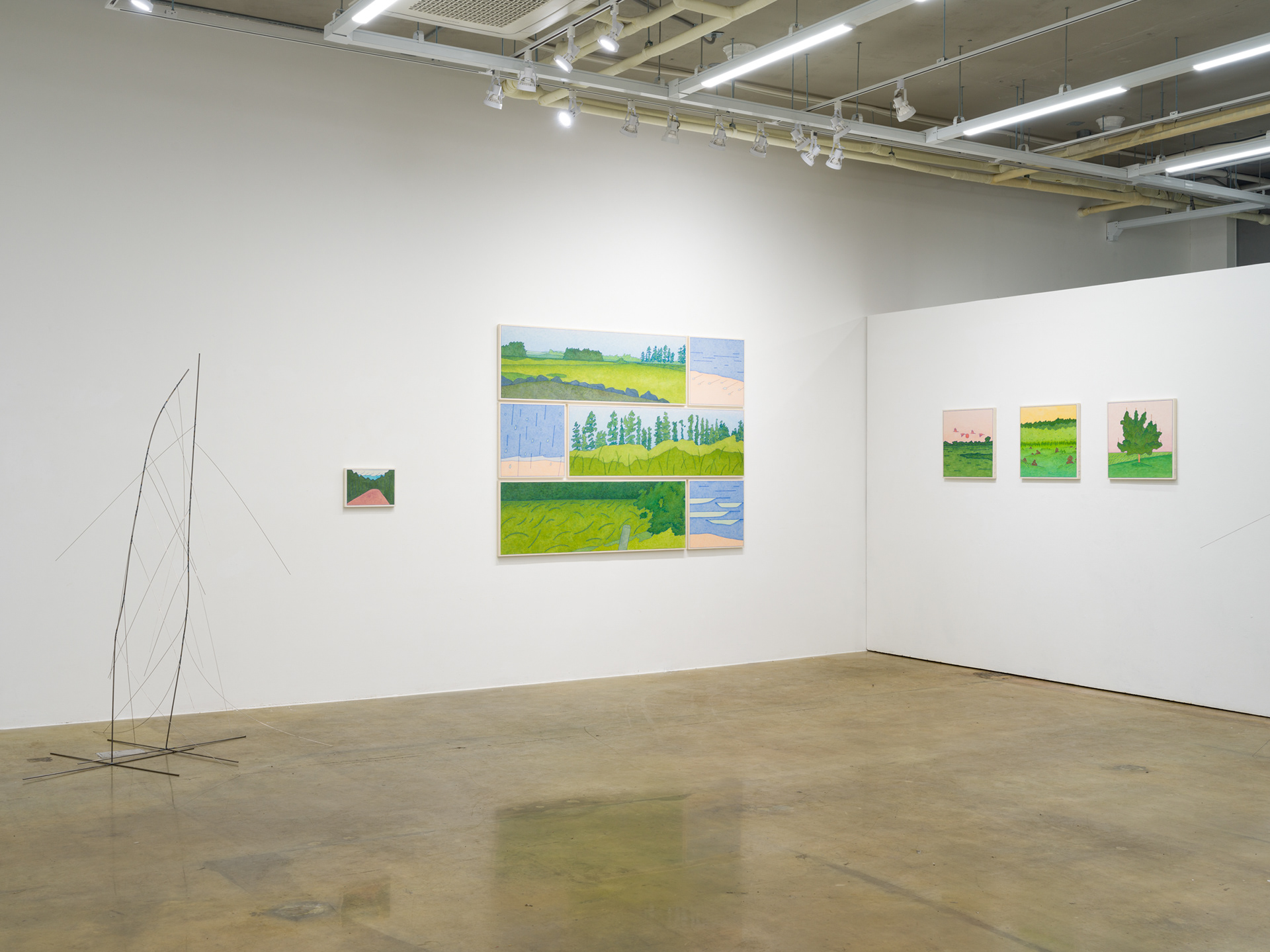 하늘을 향해 유유히 날아다니는 정다은의 새는 미래, 체인에 매달려 땅을 향해 몸을 맡긴 이나영의 새는 과거, 그리고 구본철이 주목하는 새의 감각은 현재적 관점을 취한다.